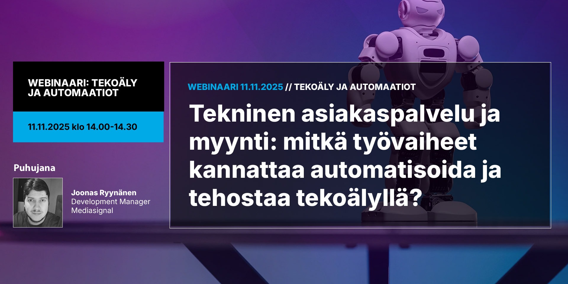 Osallistu webinaariin: Mitkä teknisen asiakaspalvelun ja myynnin työvaiheet kannattaa automatisoida tekoälyllä?